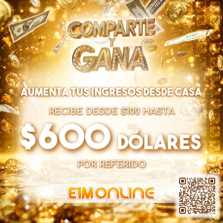 4️⃣ - Recibirás hasta $600 USD / $1.300.000 COP, según la moneda con la que tu referido realice su pago. Es decir, ganarás el 10% del Paquete Promocional que tu referido adquiera. (Los valores aquí mencionados no son una conversión respectiva. El programa de E1M aplica dos monedas de pago independientes y no relacionadas, COP y USD, según el país de residencia del estudiante).