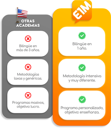 Puedo asegurarte que E1M es la mejor opción si realmente quieres aprender a comunicarte en inglés. Su metodología y la calidad profesional y personal de sus instructores son la mejor garantía de que serás bilingüe en menos de un año.